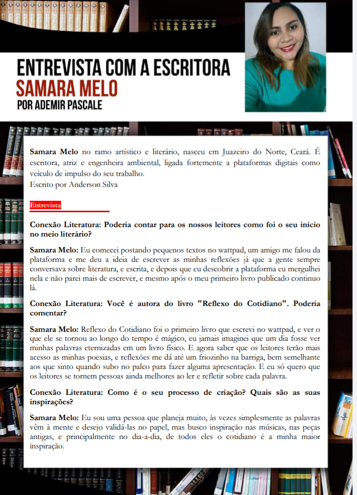 Leiam a entrevista completa no site da Revista Conexão Literária do mês de setembro.